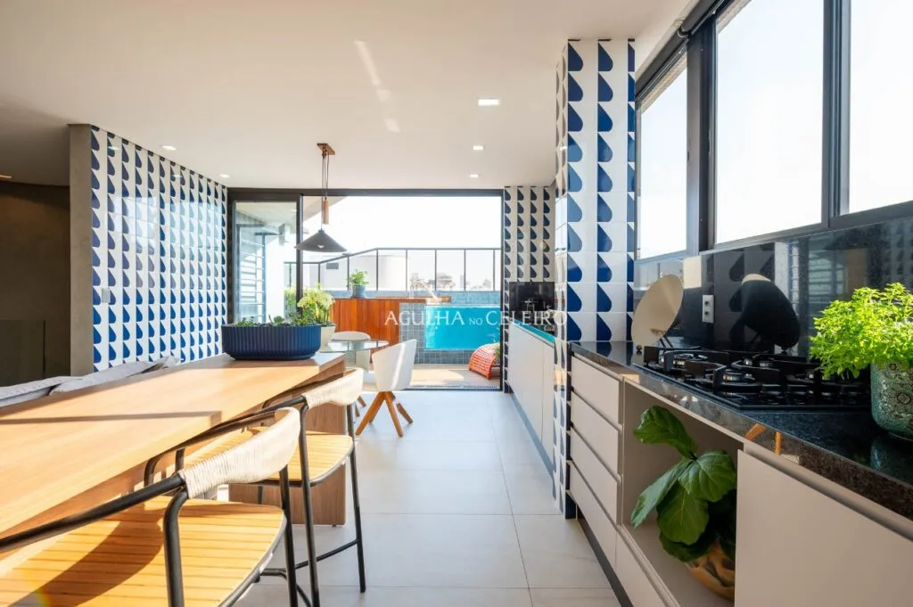 O projeto de interiores dessa cobertura foi pensado nos mínimos detalhes, trazendo acabamentos modernos, iluminação natural abundante e integração inteligente dos ambientes. O piso inferior conta com sala de estar e jantar aconchegante, cozinha planejada com marcenaria sob medida e eletrodomésticos embutidos e um terraço exclusivo com área gourmet e uma jacuzzi, perfeito para receber […]