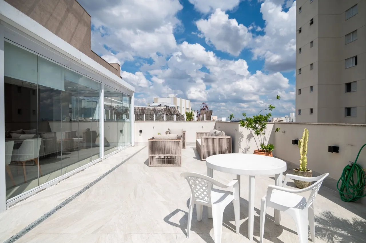 A área externa. Um show à parte! Com espaço de sobra e já preparada para receber uma jacuzzi, além de um delicioso espaço gourmet, vai ser o lugar perfeito para relaxar, receber os amigos e curtir a vista maravilhosa dessa localização incrível.