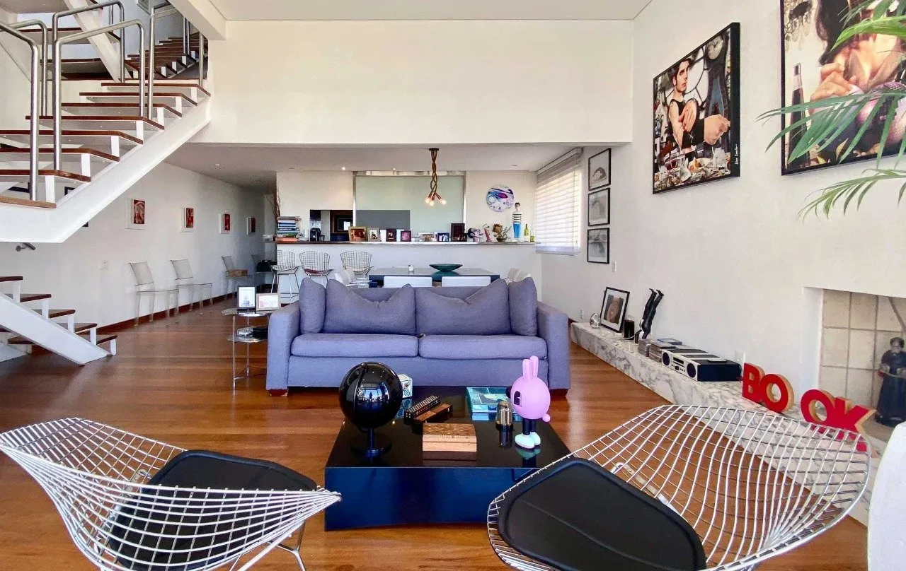 O pé direito duplo é sofisticado e os janelões permitem a entrada de bastante luz natural, além de deixar tudo bem arejado. Seus ambientes de convivência são beneficiados por essa iluminação estratégica, ficando bem aconchegantes e convidativos.
