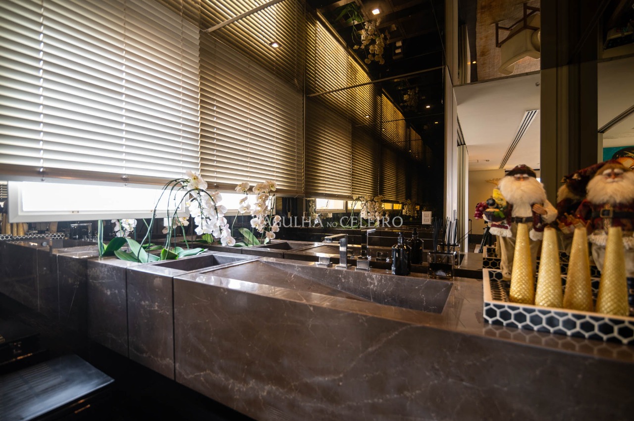 No andar superior, o lazer ganha um novo significado. Um espaço gourmet equipado com eletrodomésticos de alta performance da marca Viking eleva qualquer experiência gastronômica. O deck com chuveirão e a hidromassagem ficam sob o teto retrátil que oferece versatilidade para aproveitar tanto o brilho do sol quanto a magia do luar. Para completar, uma suíte de visitas.